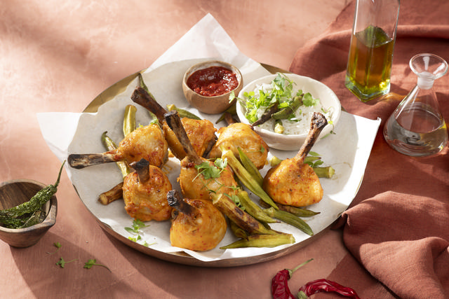1. Put all the ingredients for the marinade in a blender and grind them for a minute. Marinate the chicken legs in a bowl and put them in the refrigerator for 2 hours.