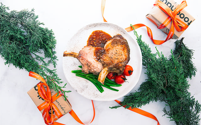 13. Serve Iberico ribs with the sauce, roasted cherry tomatoes and green whole beans (cook by following the package instructions).