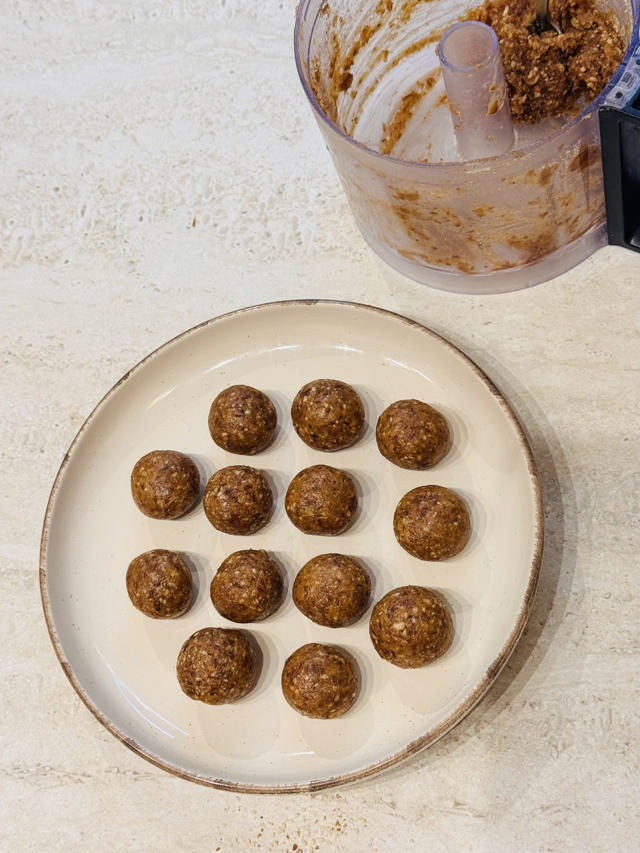 4. Wet your hands a little before creating the energy balls so the mixture doesn’t stick to your  hands. Make approx. 11-15 balls depending on size.