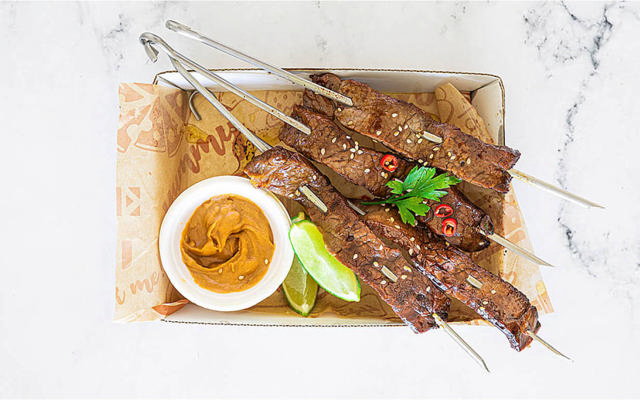 7. Mix 4 tbsp of the peanut sauce with the vegetable oil and brush all over the beef.