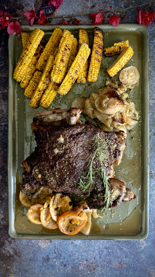 7. Brush with melted butter and sprinkle with salt and chimichurri. Serve with the lamb.