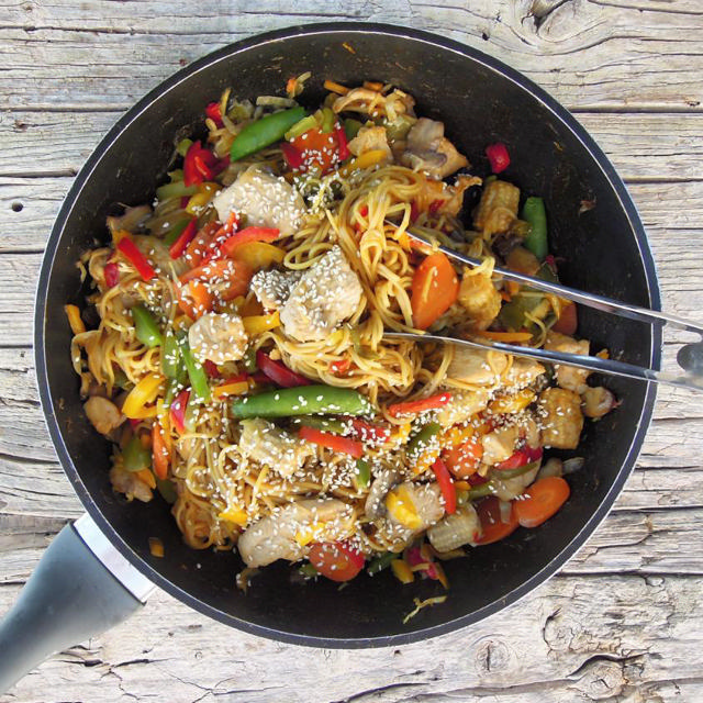 In a small bowl, whisk together corn flour and soy sauce until lump free, then add the remaining sauce ingredients, whisk and set aside.