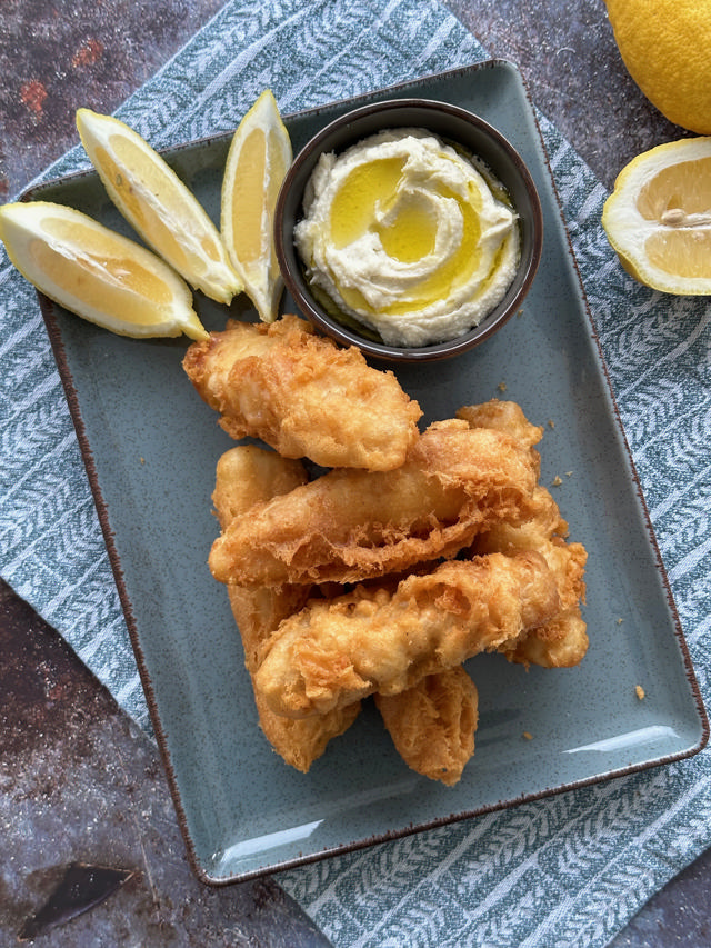Add salt and pepper on the fish. In a bowl, mix the flour with the cornflour. Put each fillet through this mixture and then dip it in the batter. Fry for 2-3 minutes until the fillets get golden and crispy. Once finished, place them on a plate with kitchen paper.