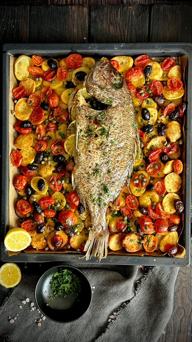 6. Transfer to the oven and bake for 30-40 minutes depending on the size of your fish.