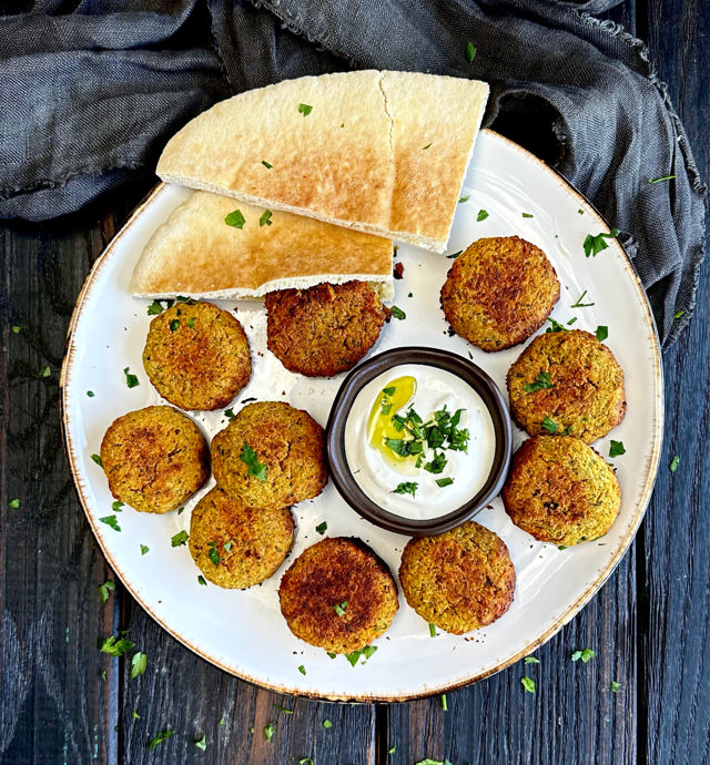 7. Brush the patties with a little extra olive oil and bake in a preheated oven at 220˚C for 25 minutes, turn them over and bake for another 15 minutes depending on the oven. Serve immediately with tahini dip.