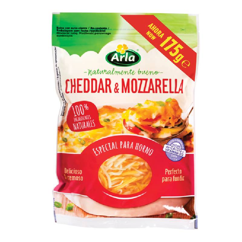 Red cheddar cheese (53%), Mozzarella cheese (37%), hard matured cheese (10%)